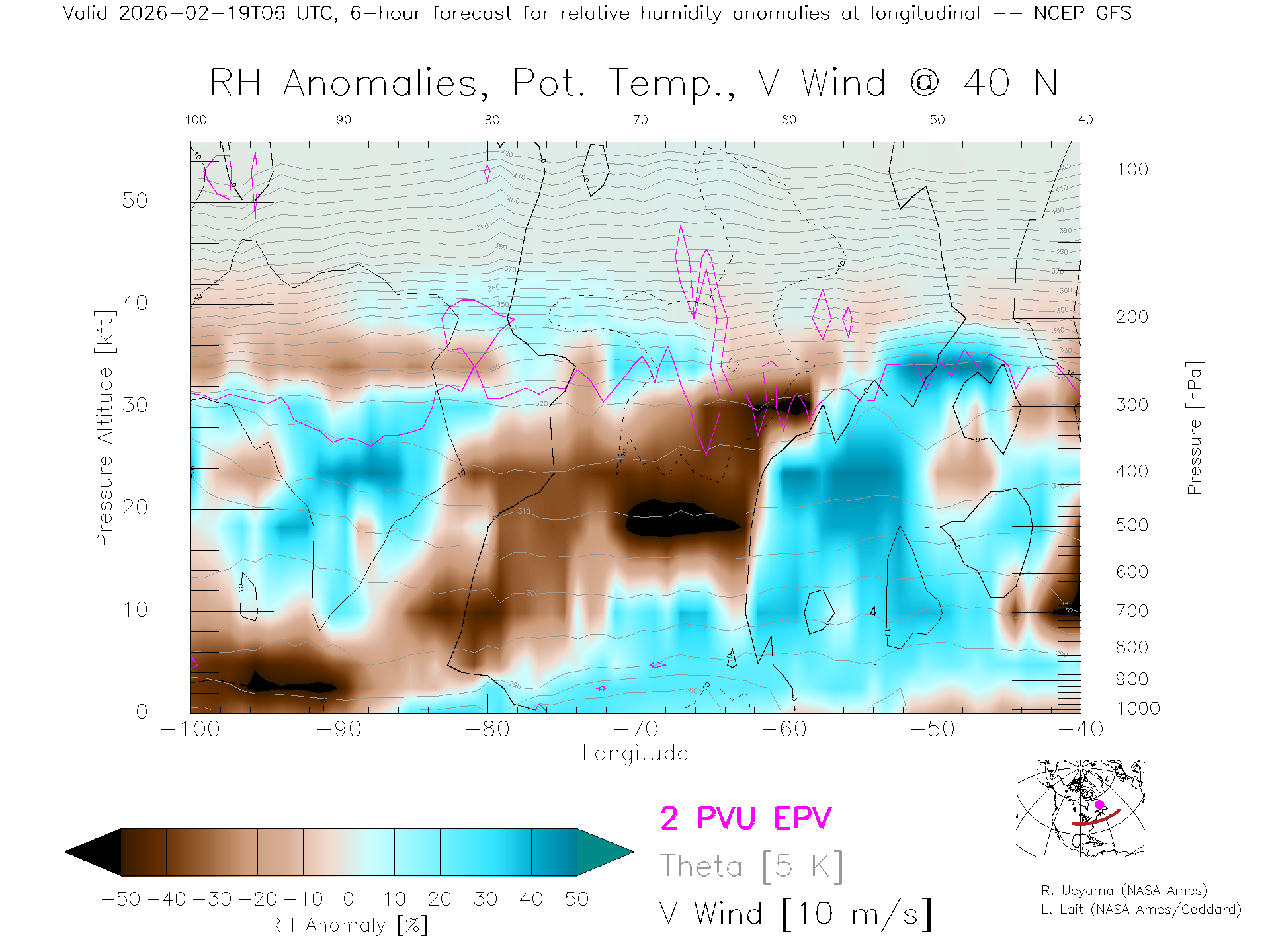 NCEP GFS Forecast Rel. Hum. X-Section (40 N)