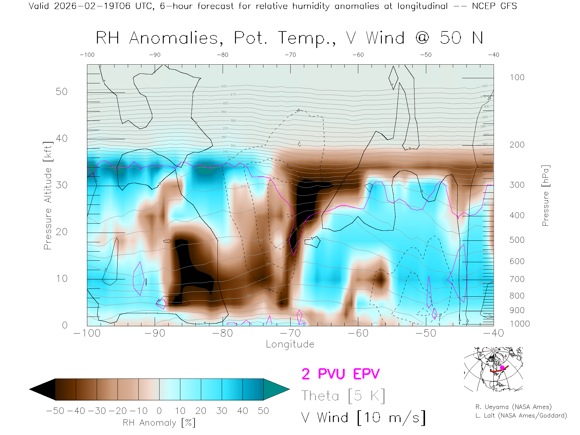 NCEP GFS Forecast Rel. Hum. X-Section (50 N)