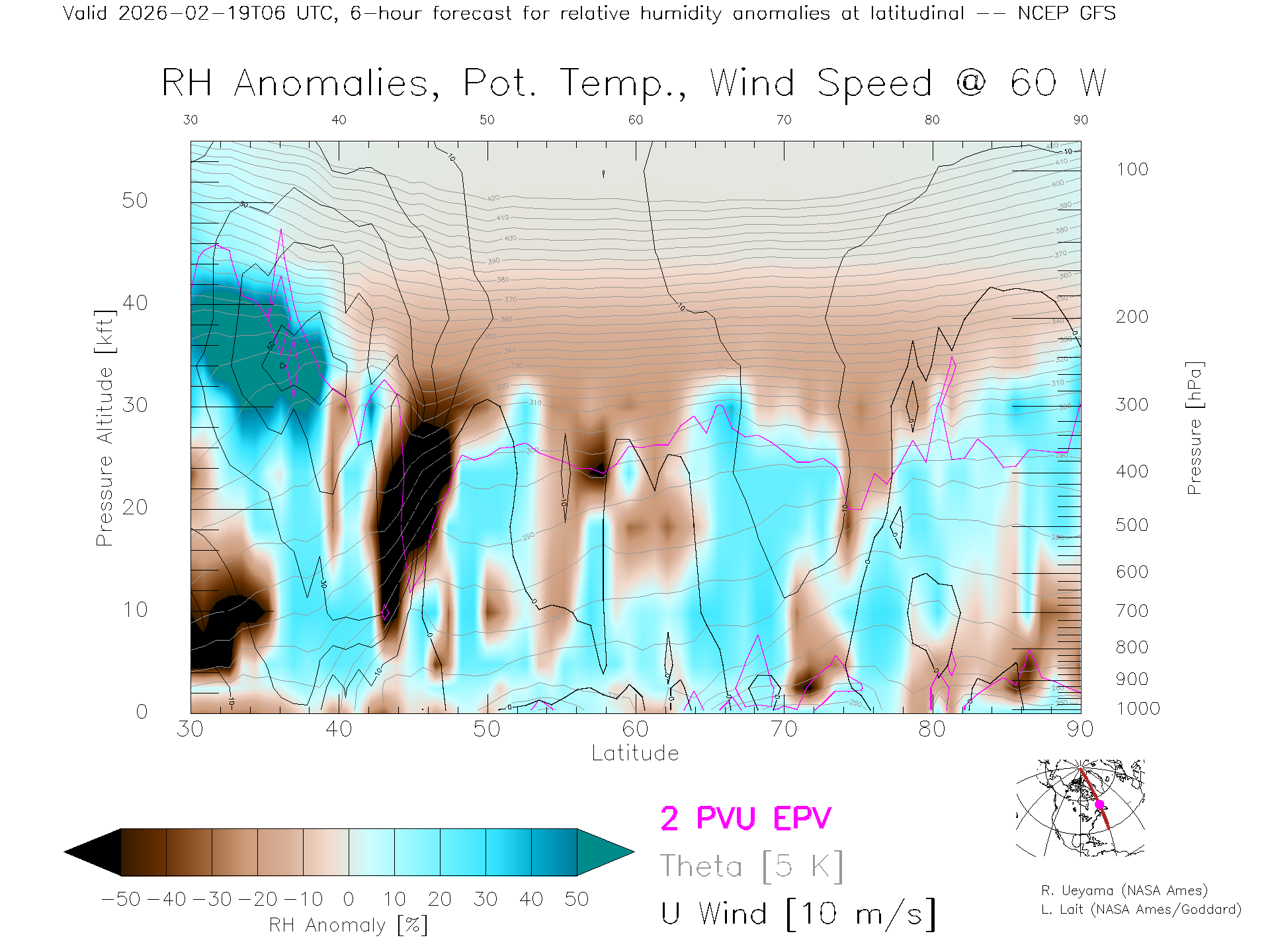 NCEP GFS Forecast Rel. Hum. X-Section (60 W)