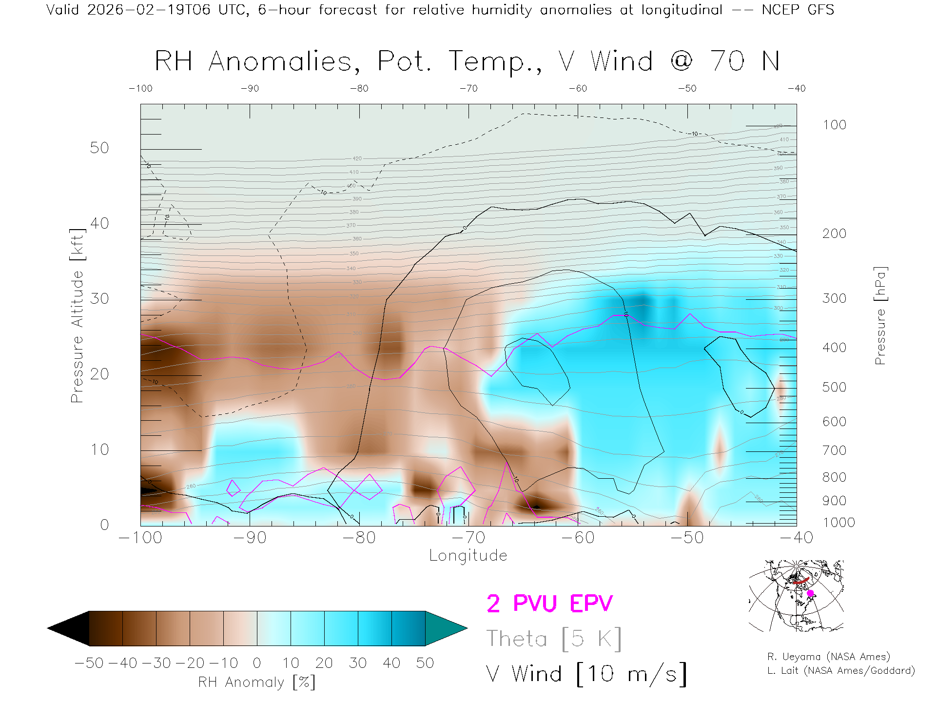 NCEP GFS Forecast Rel. Hum. X-Section (70 N)