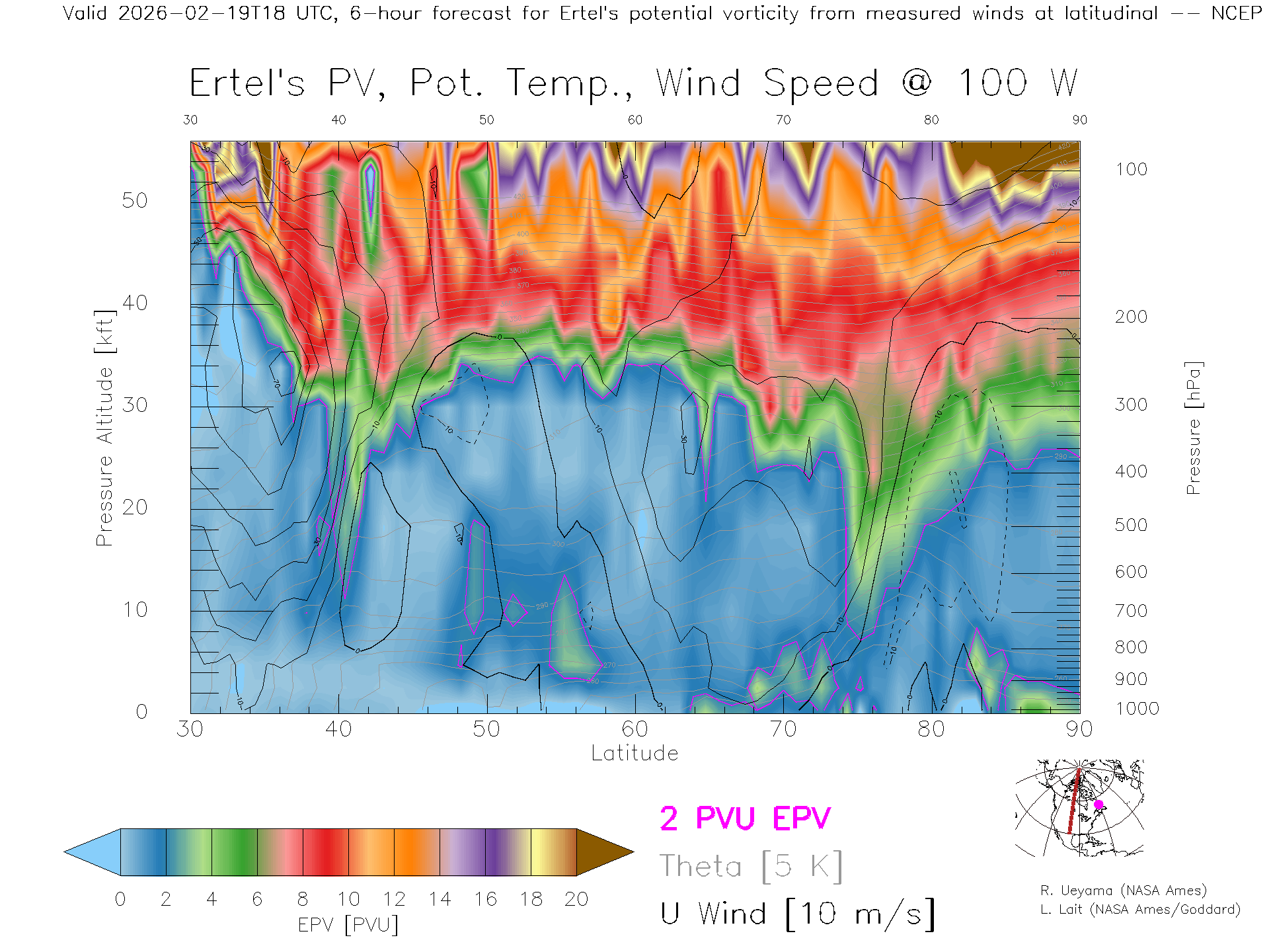 NCEP GFS Forecast PV X-Section (100 W)