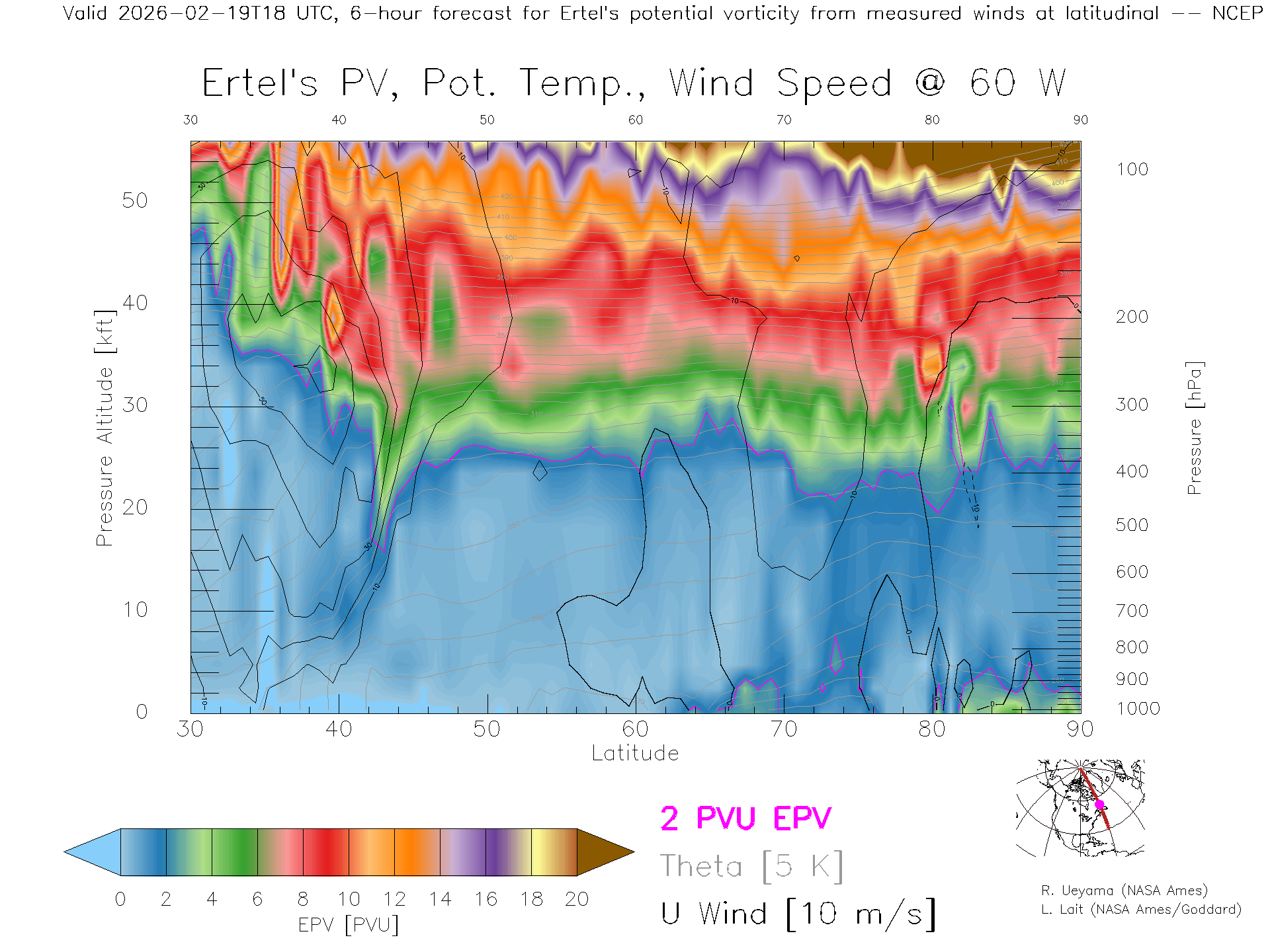 NCEP GFS Forecast PV X-Section (60 W)