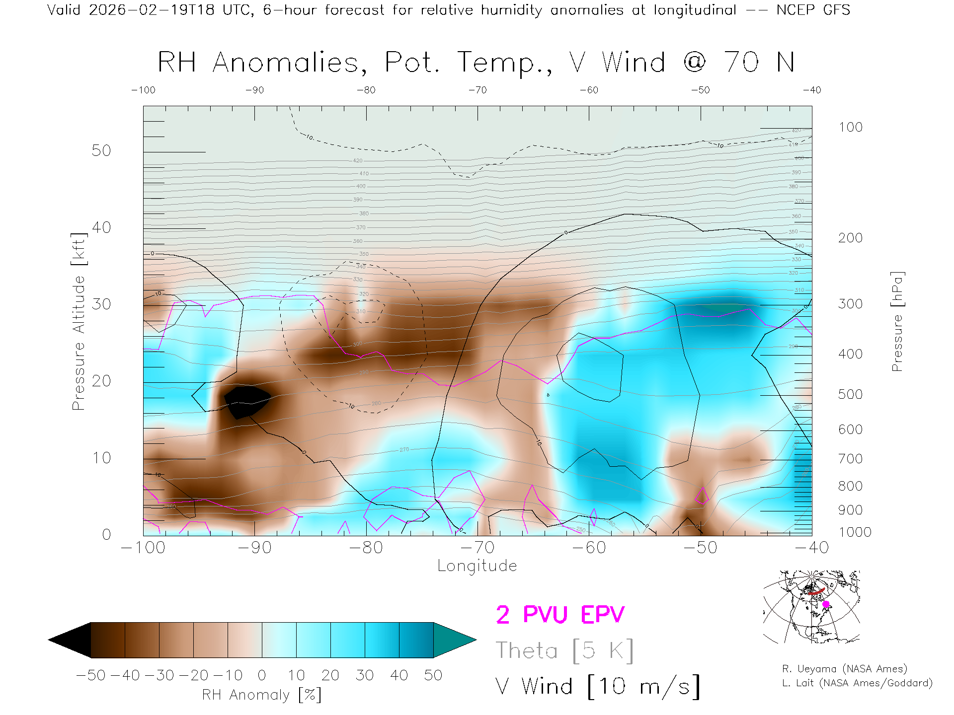 NCEP GFS Forecast Rel. Hum. X-Section (70 N)