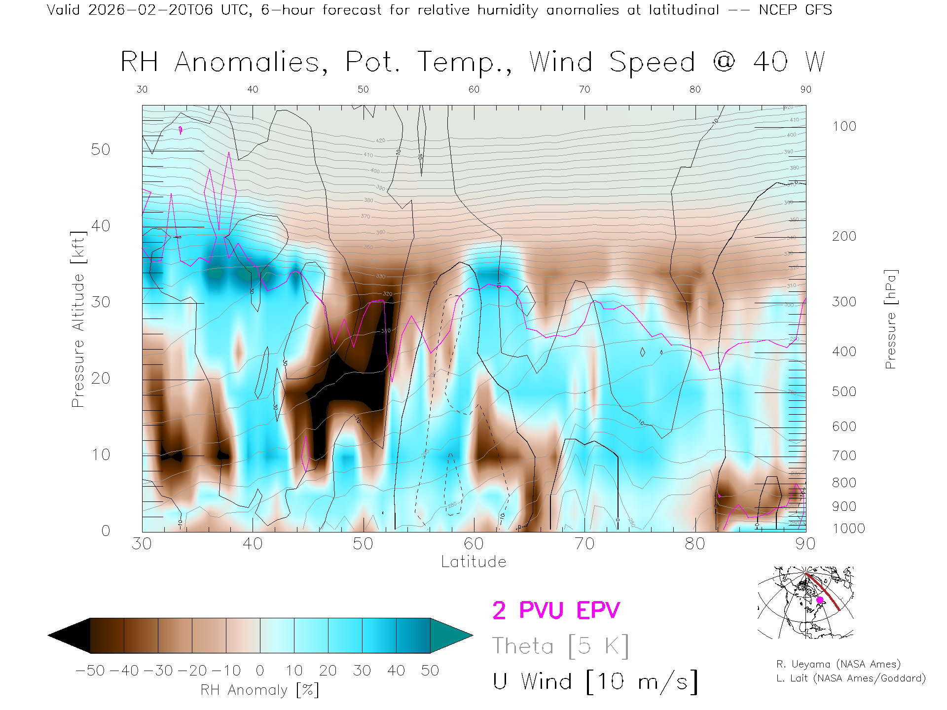 NCEP GFS Forecast Rel. Hum. X-Section (40 W)