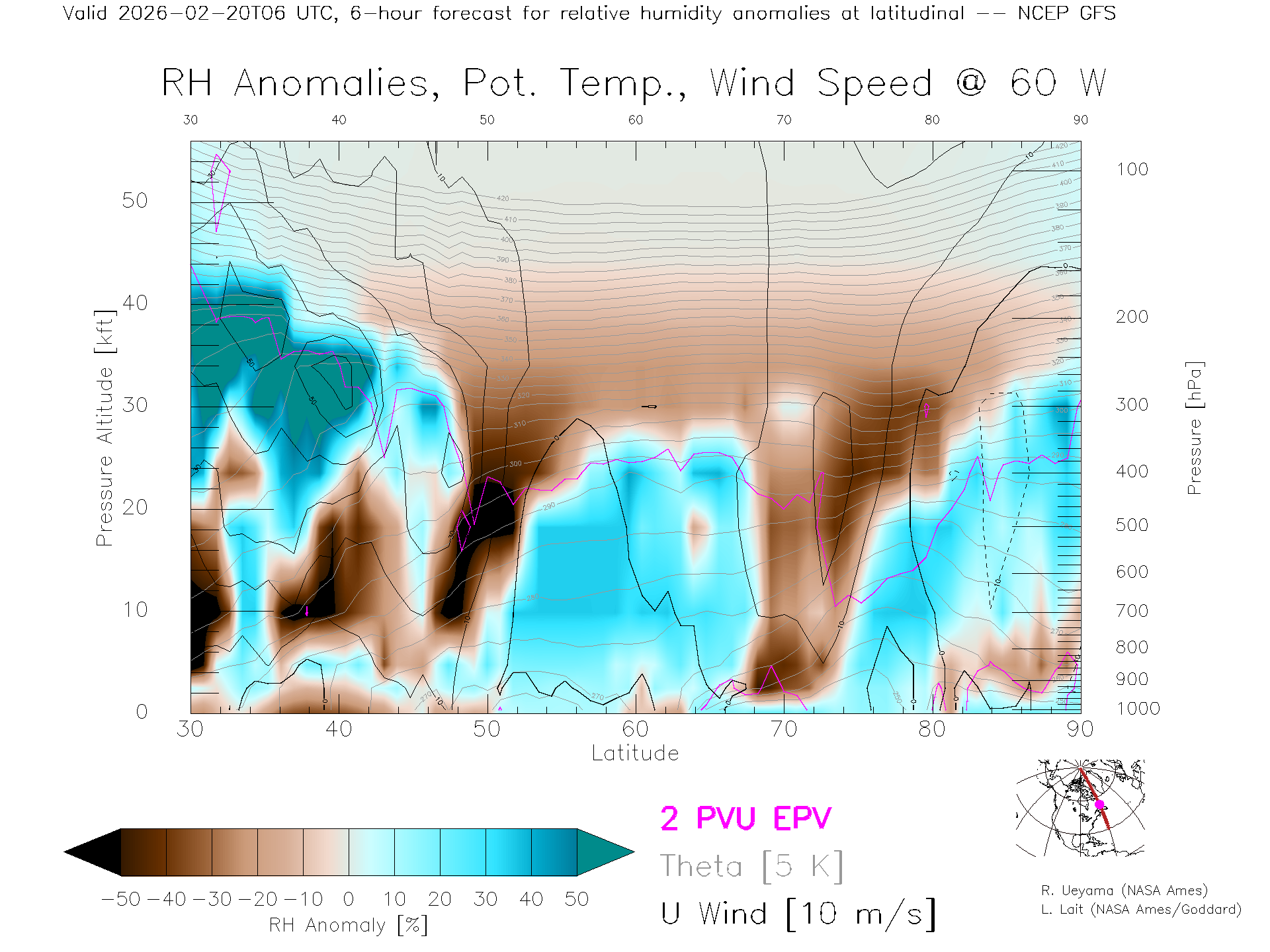 NCEP GFS Forecast Rel. Hum. X-Section (60 W)