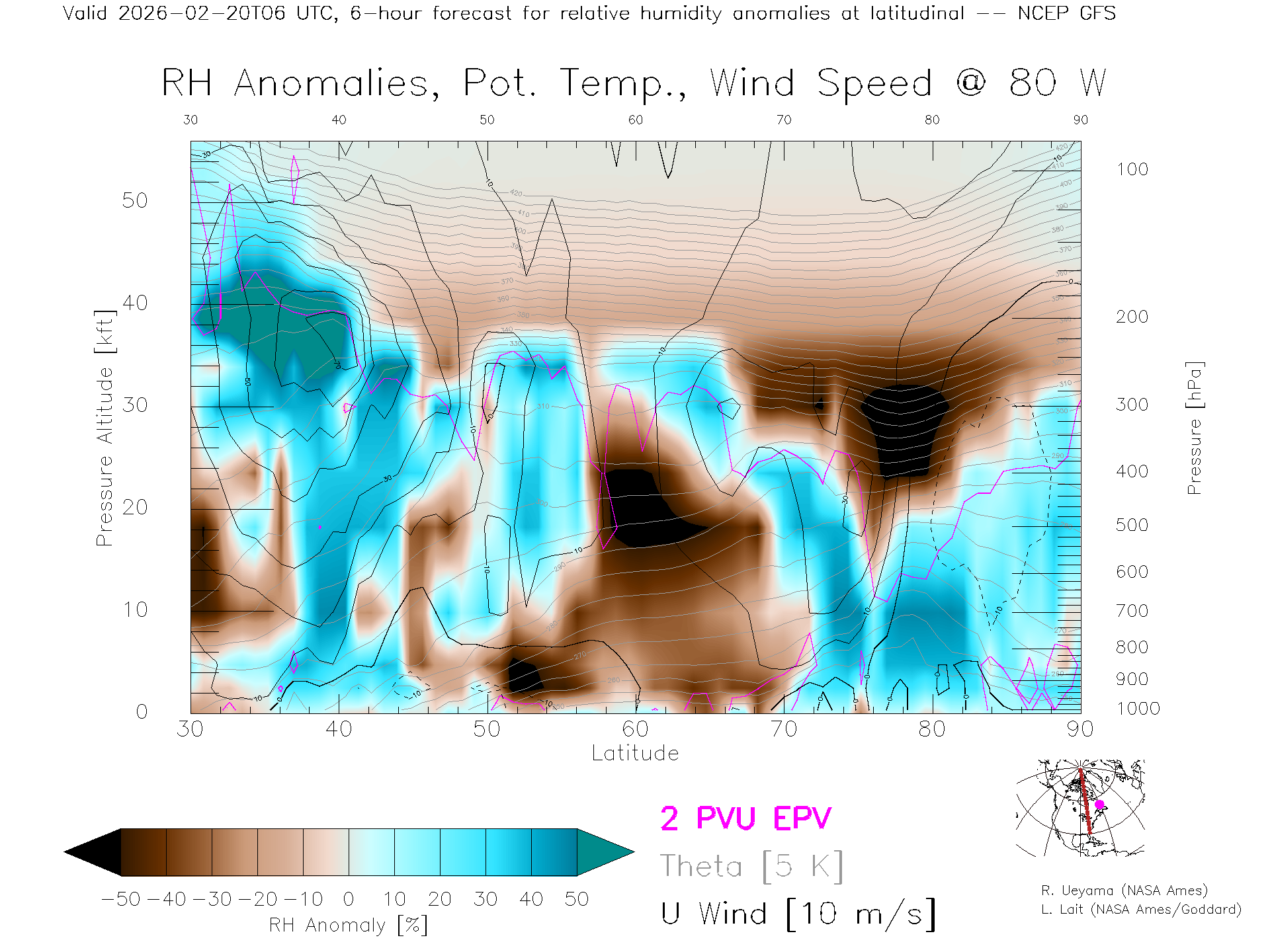 NCEP GFS Forecast Rel. Hum. X-Section (80 W)