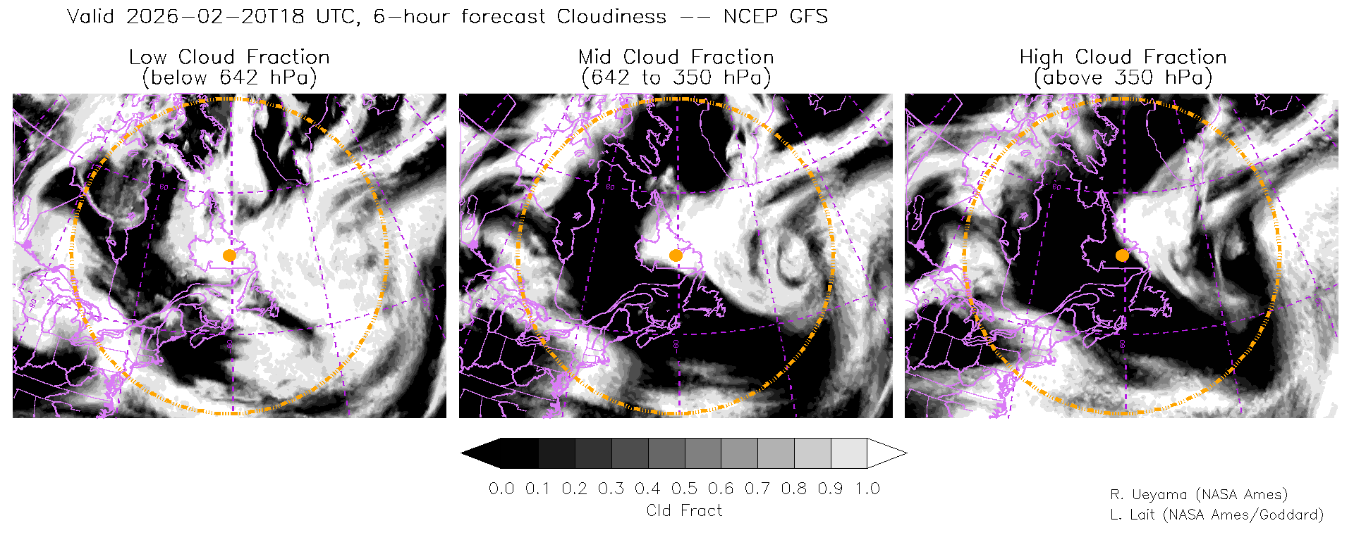 NCEP GFS Forecast Cloud Fraction (High, Mid, Low)