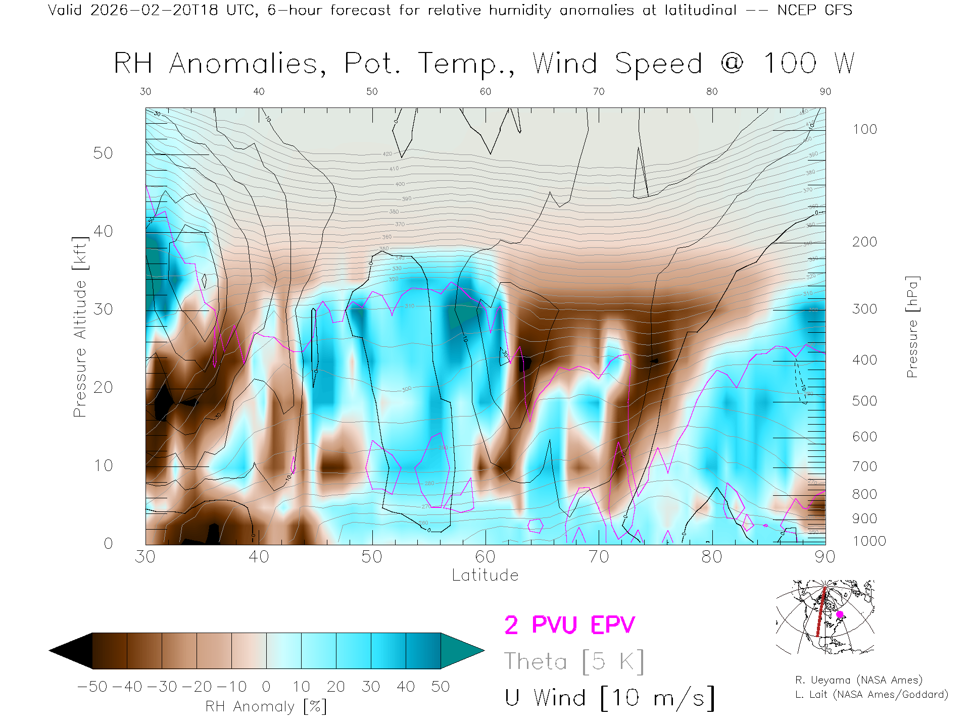NCEP GFS Forecast Rel. Hum. X-Section (100 W)