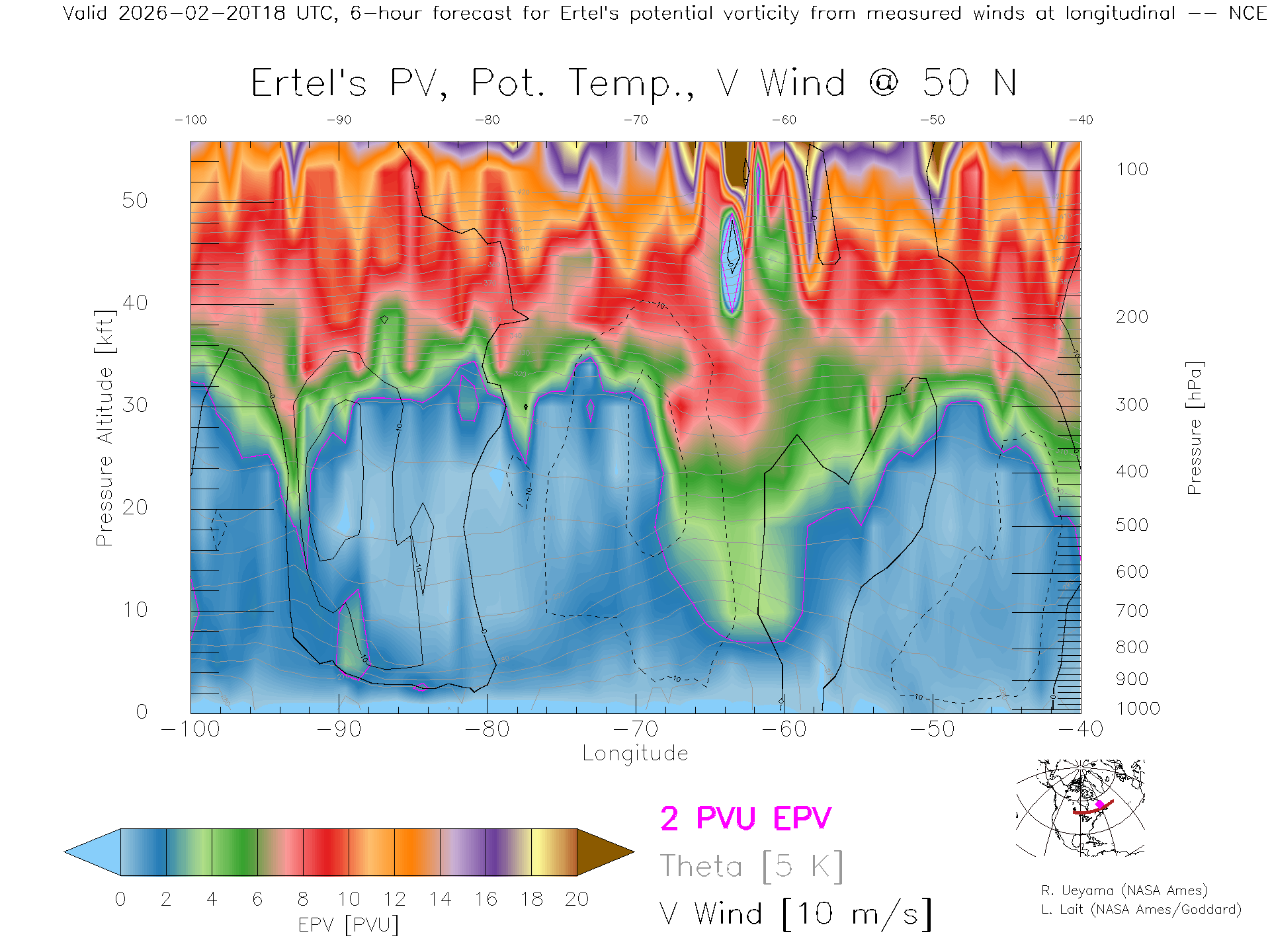 NCEP GFS Forecast PV X-Section (50 N)
