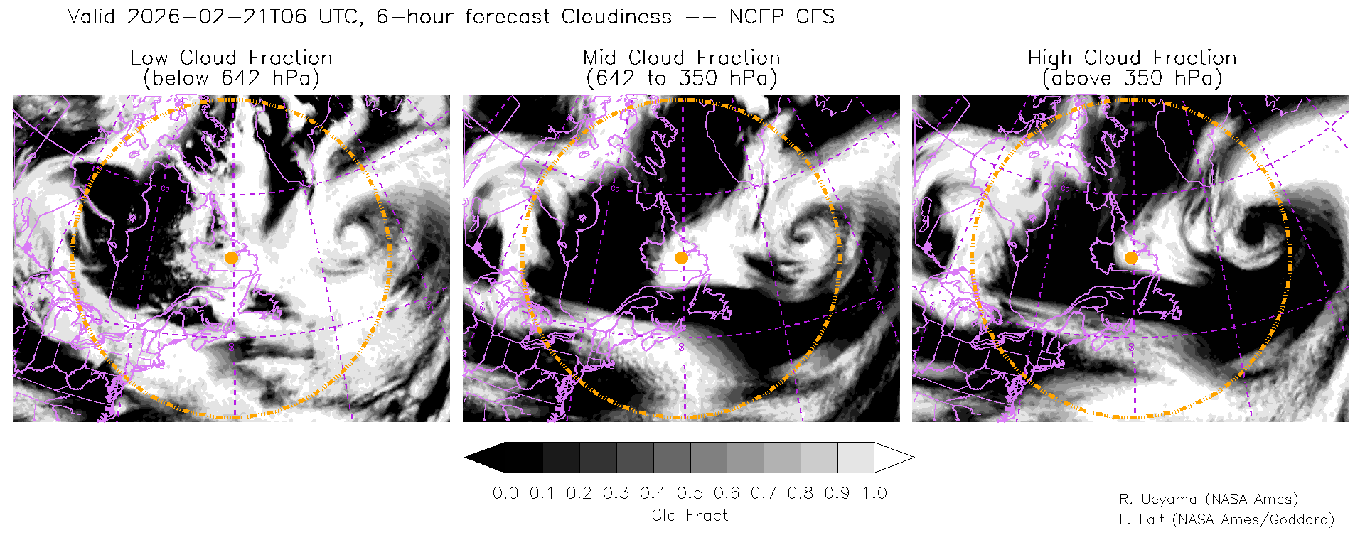 NCEP GFS Forecast Cloud Fraction (High, Mid, Low)