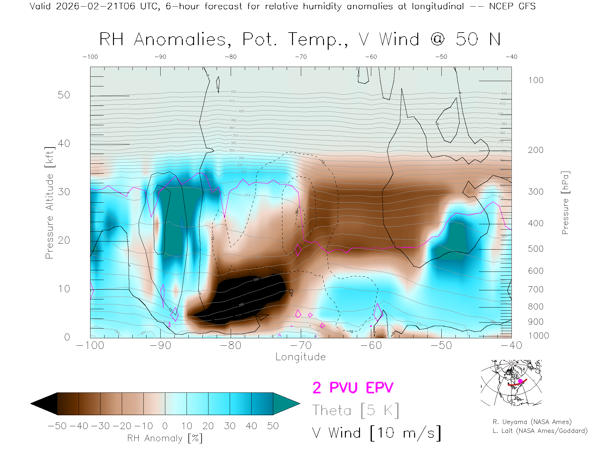 NCEP GFS Forecast Rel. Hum. X-Section (50 N)