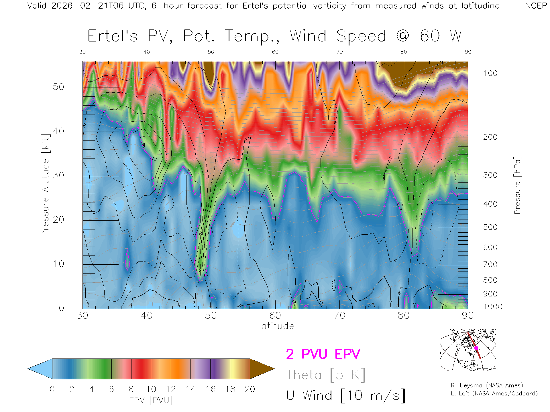 NCEP GFS Forecast PV X-Section (60 W)