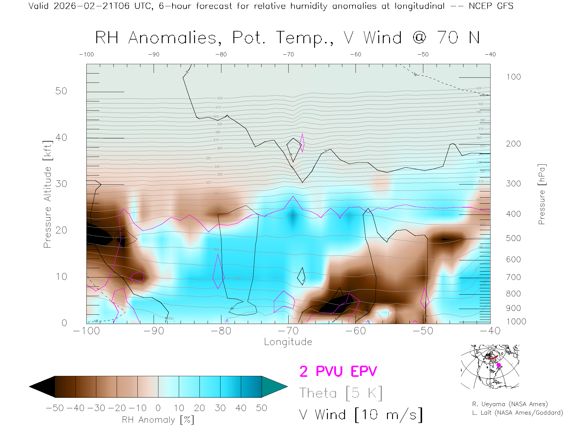 NCEP GFS Forecast Rel. Hum. X-Section (70 N)