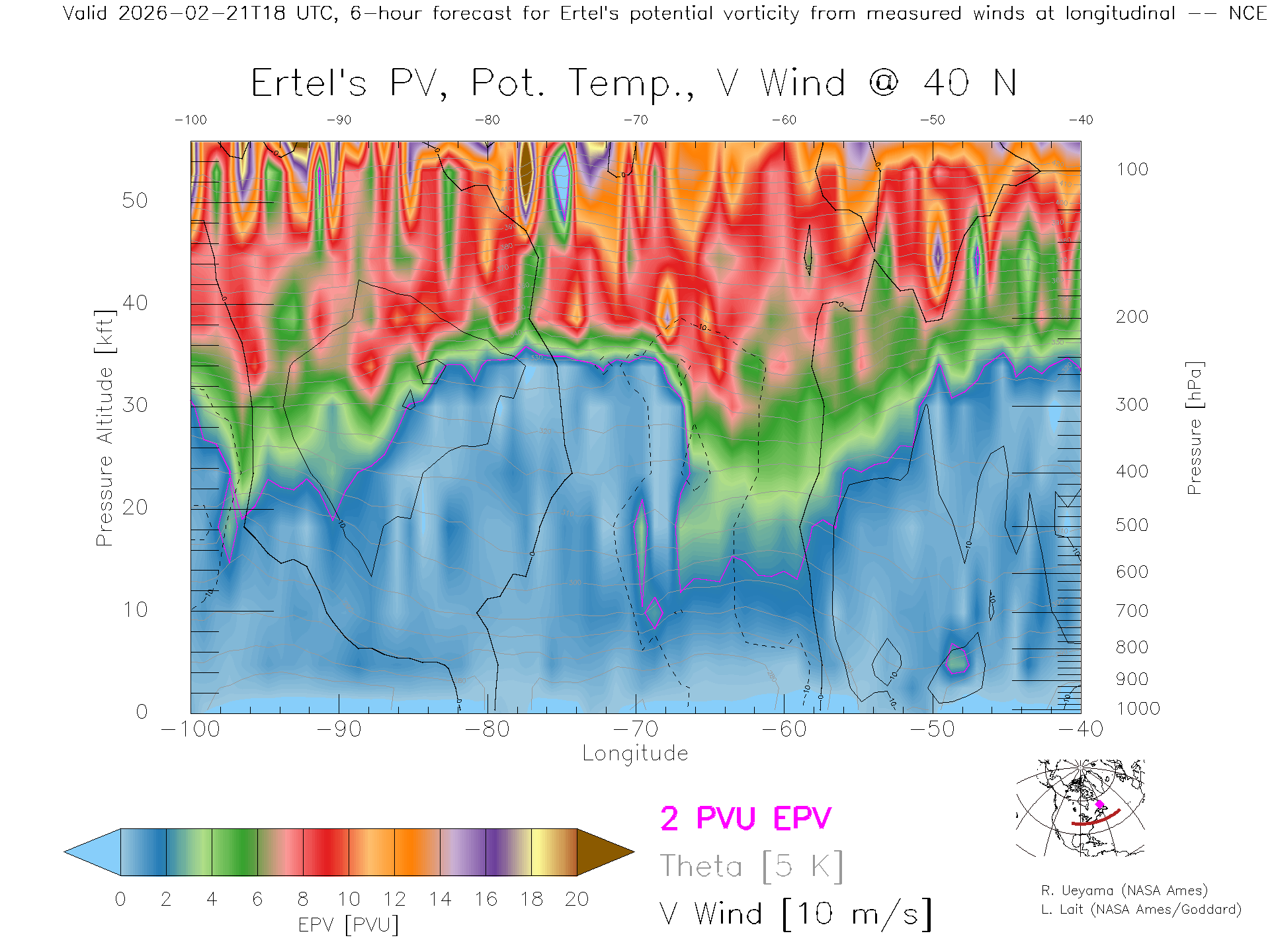 NCEP GFS Forecast PV X-Section (40 N)