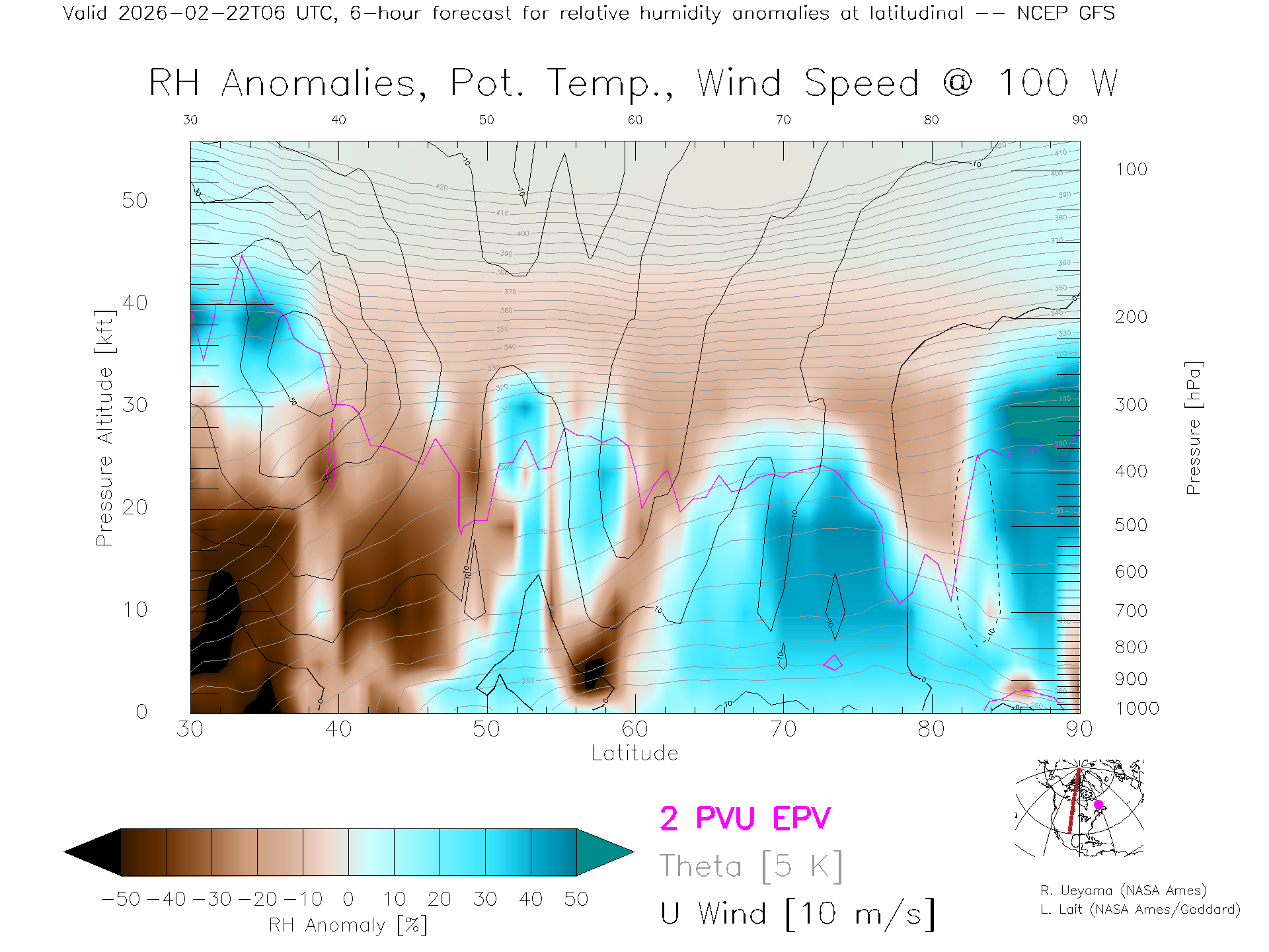 NCEP GFS Forecast Rel. Hum. X-Section (100 W)