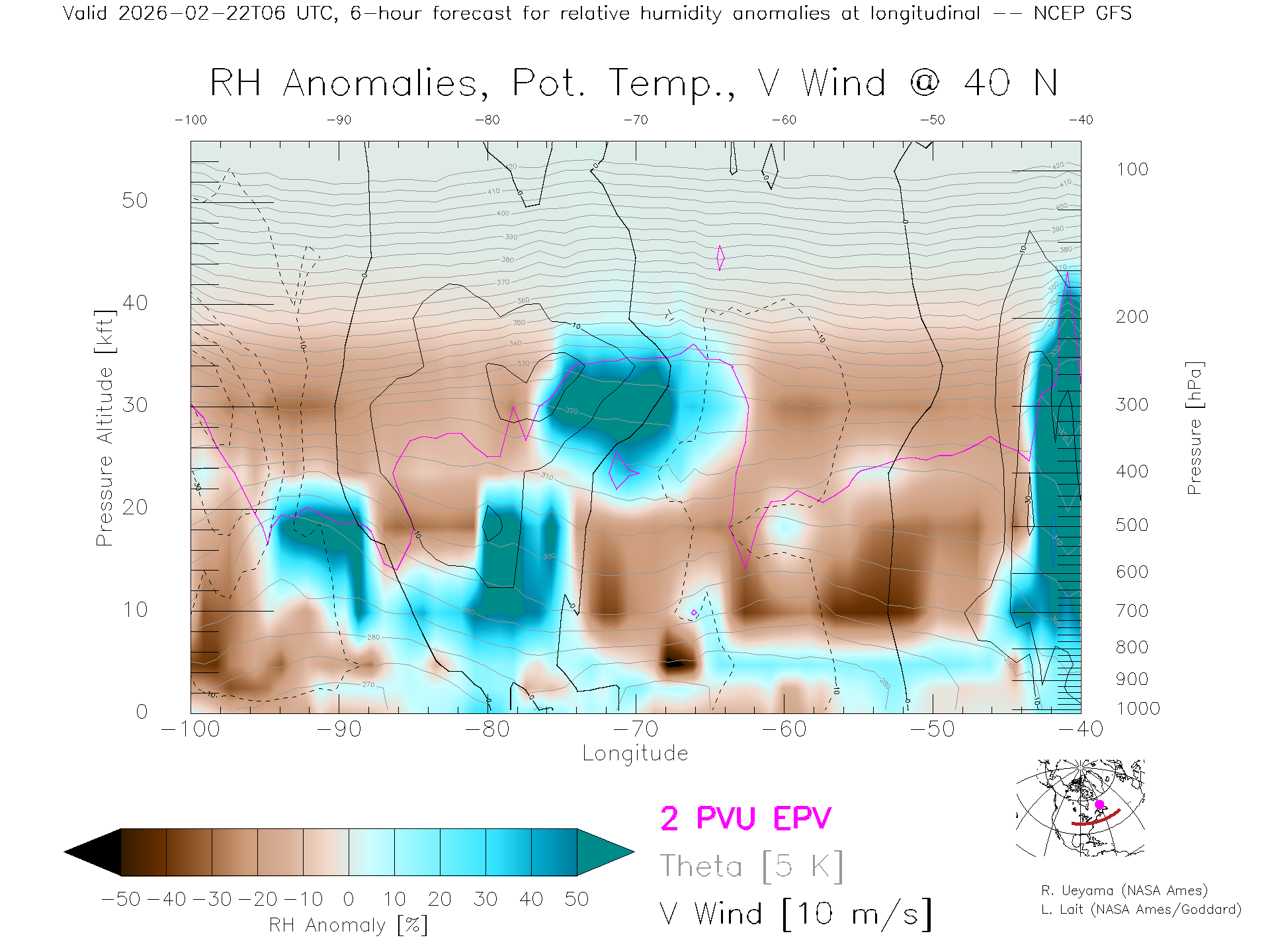 NCEP GFS Forecast Rel. Hum. X-Section (40 N)
