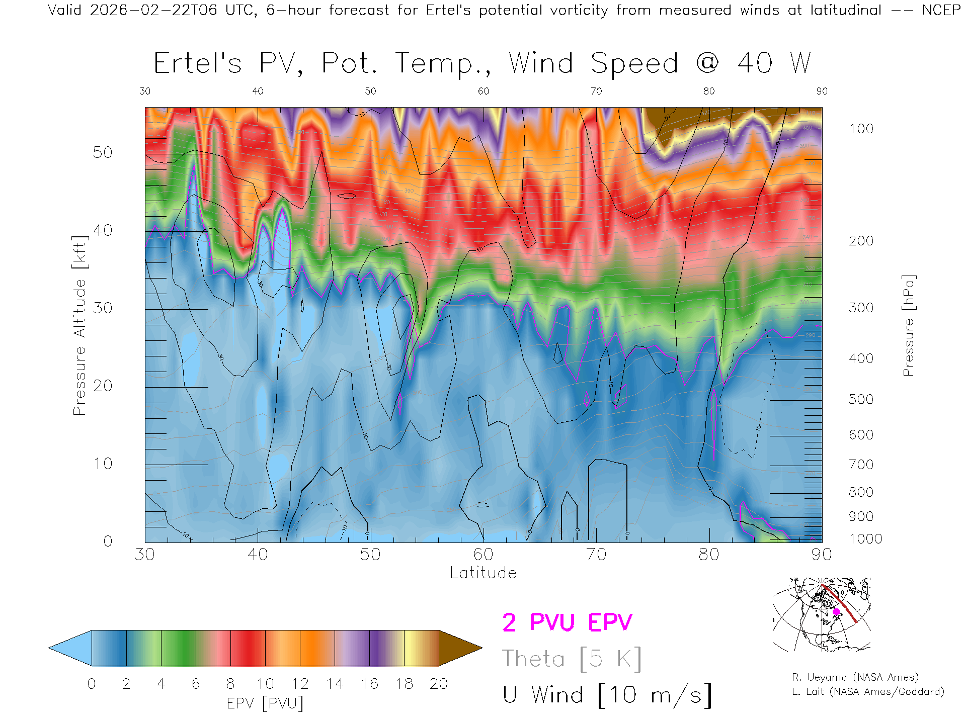 NCEP GFS Forecast PV X-Section (40 W)