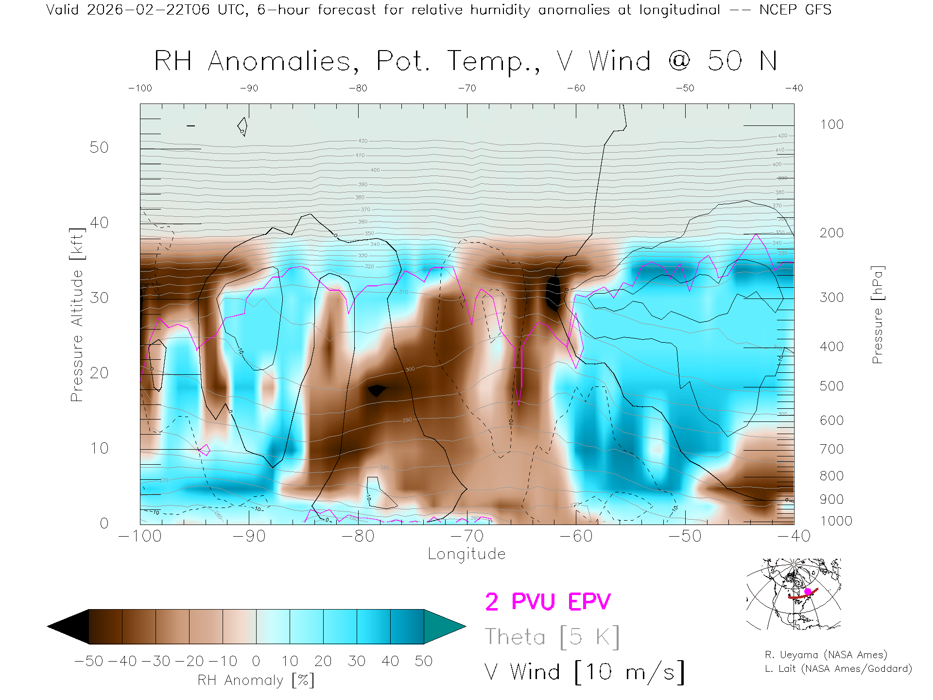 NCEP GFS Forecast Rel. Hum. X-Section (50 N)
