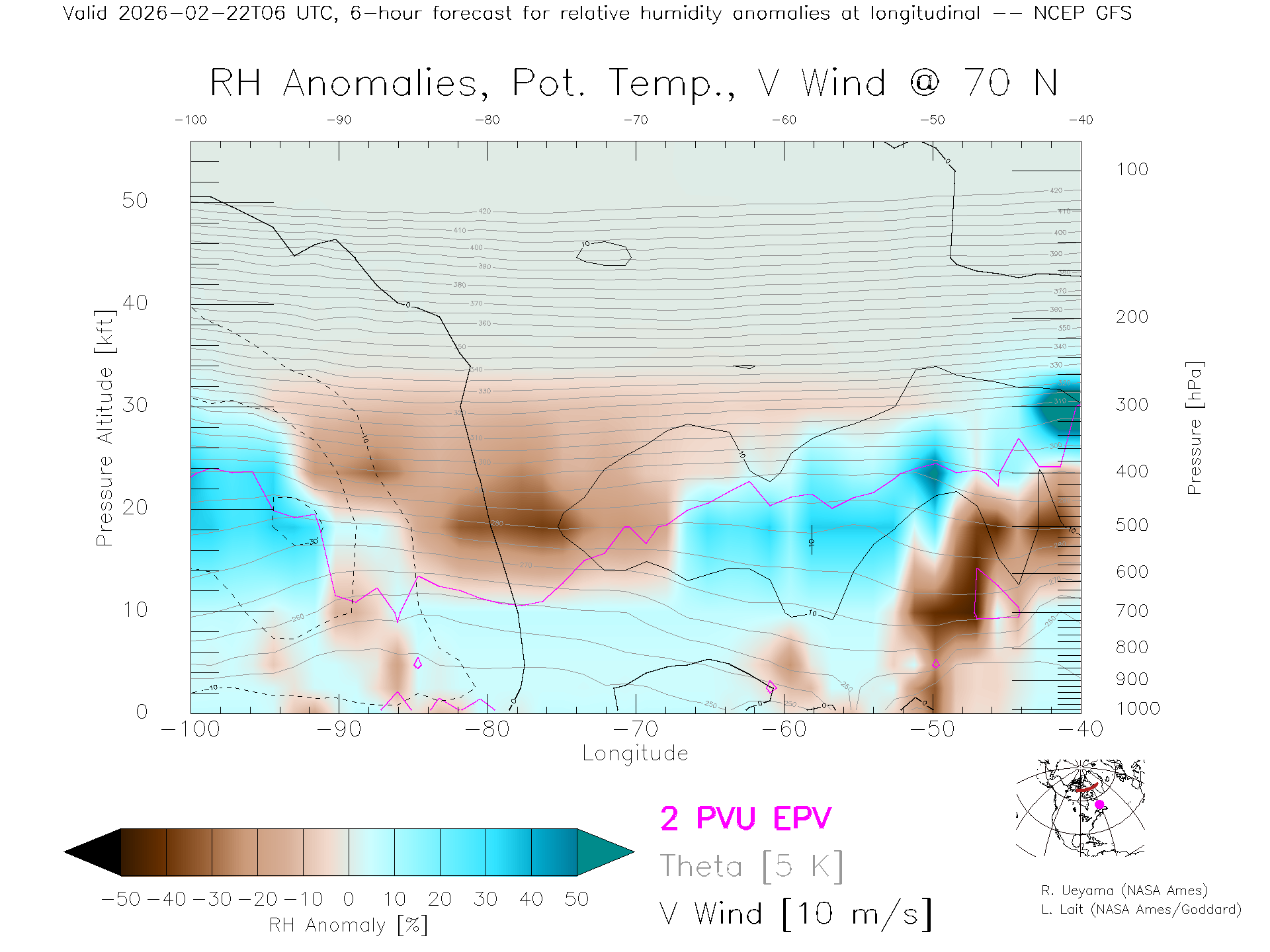 NCEP GFS Forecast Rel. Hum. X-Section (70 N)