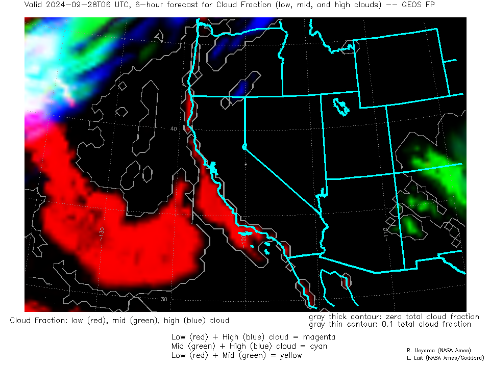 GEOS Forecast Low-, Mid- and High-level Cloud Fraction
