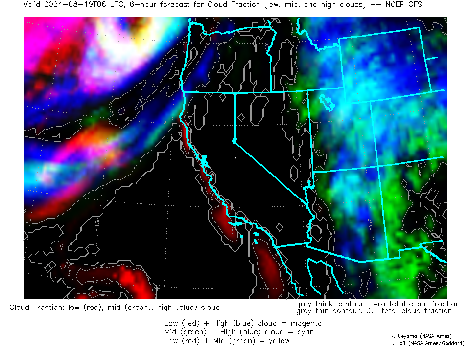NCEP GFS Forecast Low-, Mid- and High-level Cloud Fraction