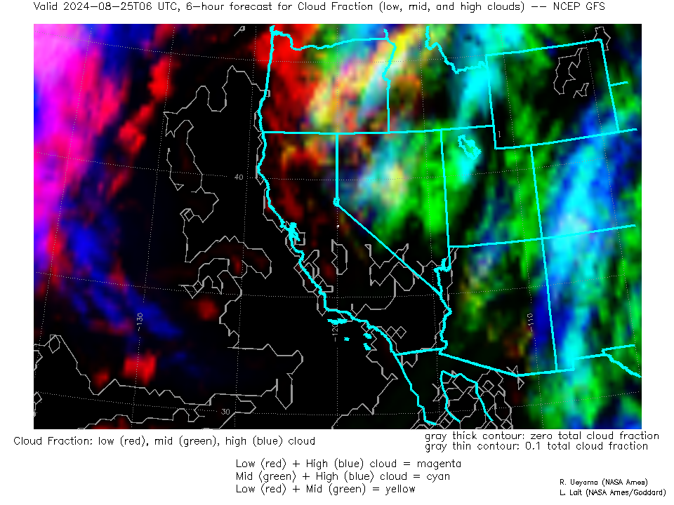 NCEP GFS Forecast Low-, Mid- and High-level Cloud Fraction