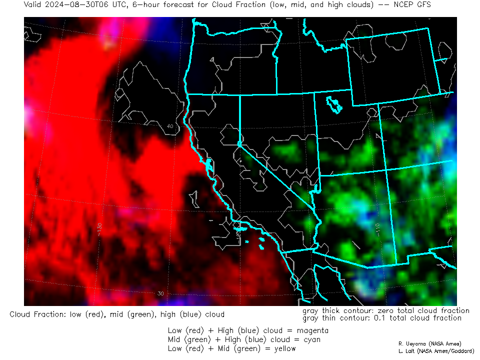 NCEP GFS Forecast Low-, Mid- and High-level Cloud Fraction