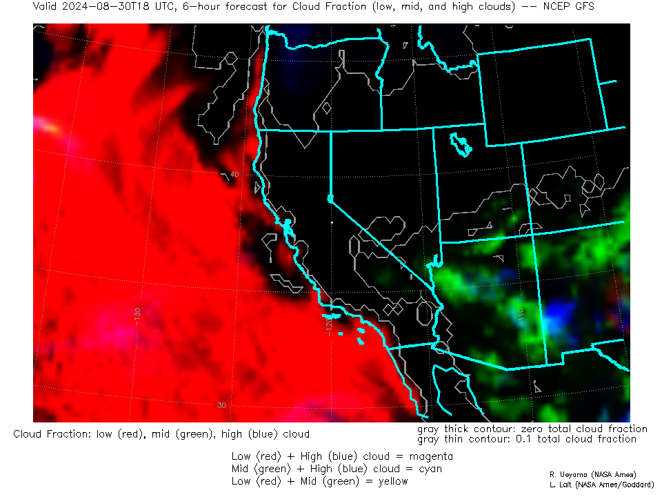 NCEP GFS Forecast Low-, Mid- and High-level Cloud Fraction
