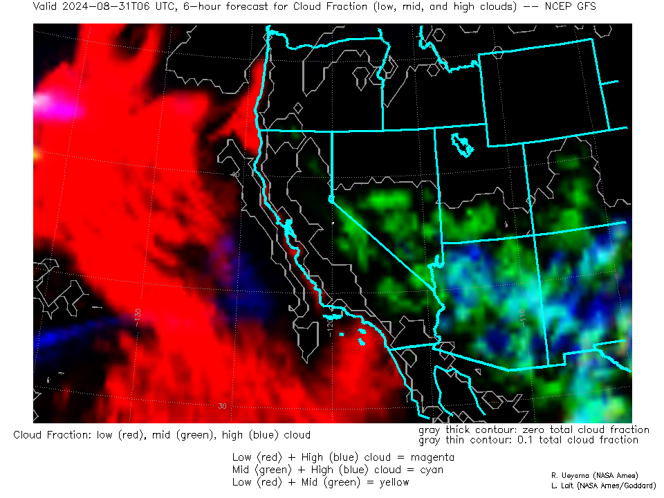 NCEP GFS Forecast Low-, Mid- and High-level Cloud Fraction
