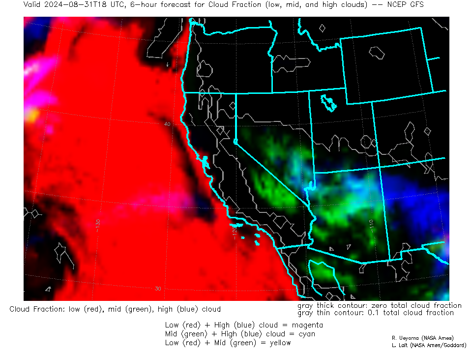 NCEP GFS Forecast Low-, Mid- and High-level Cloud Fraction