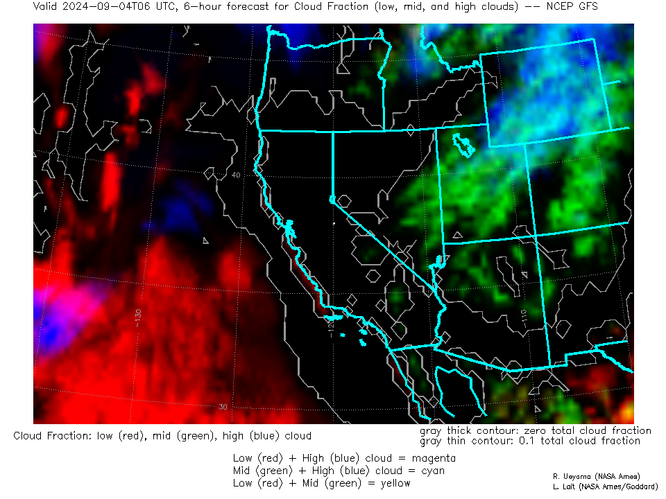 NCEP GFS Forecast Low-, Mid- and High-level Cloud Fraction
