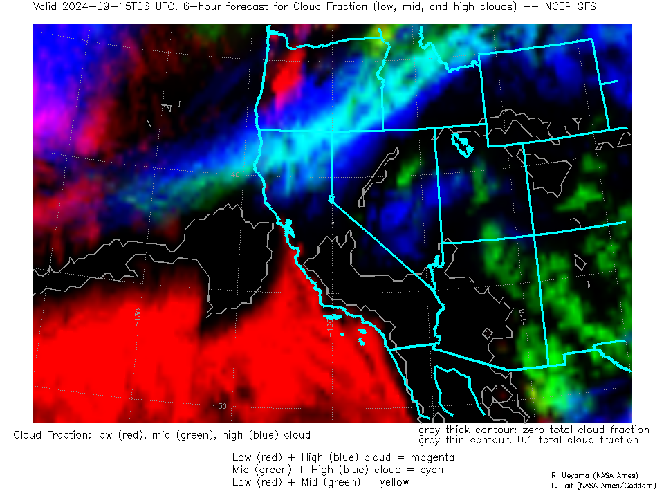 NCEP GFS Forecast Low-, Mid- and High-level Cloud Fraction