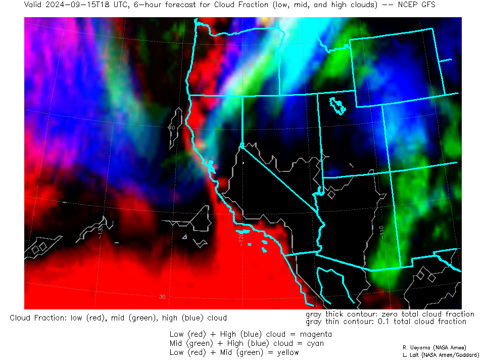 NCEP GFS Forecast Low-, Mid- and High-level Cloud Fraction