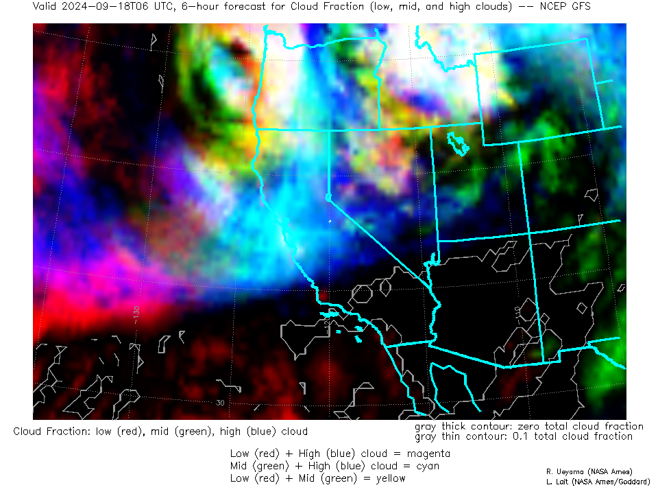 NCEP GFS Forecast Low-, Mid- and High-level Cloud Fraction