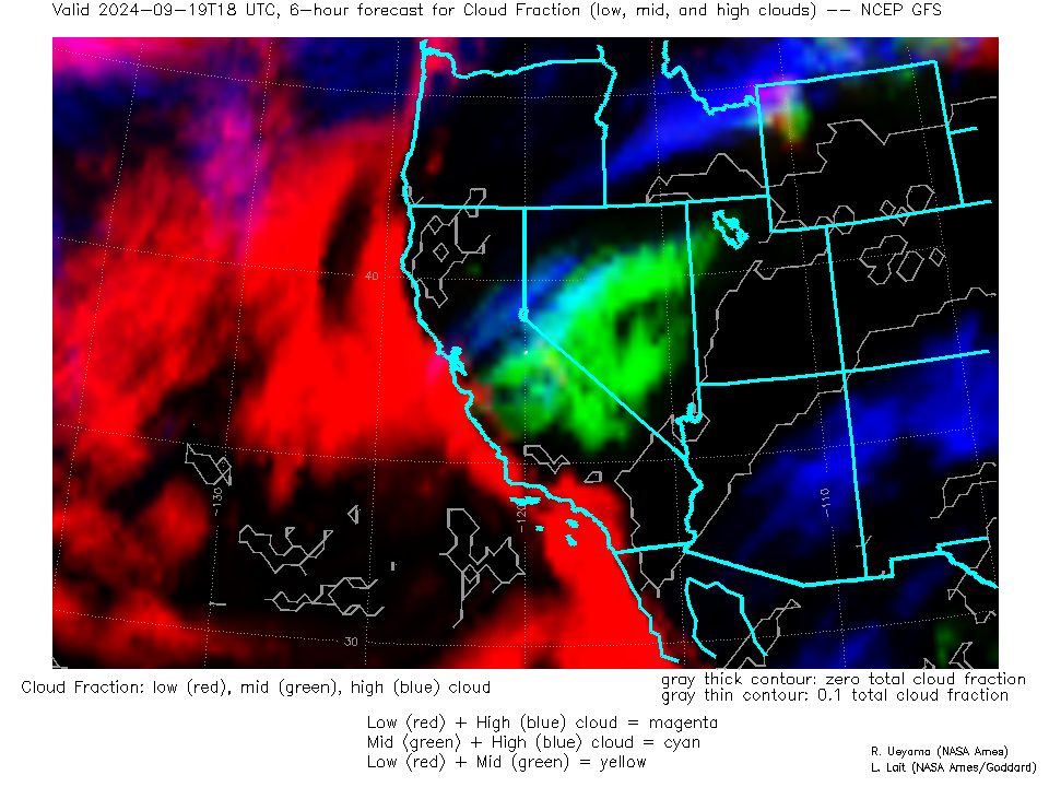 NCEP GFS Forecast Low-, Mid- and High-level Cloud Fraction