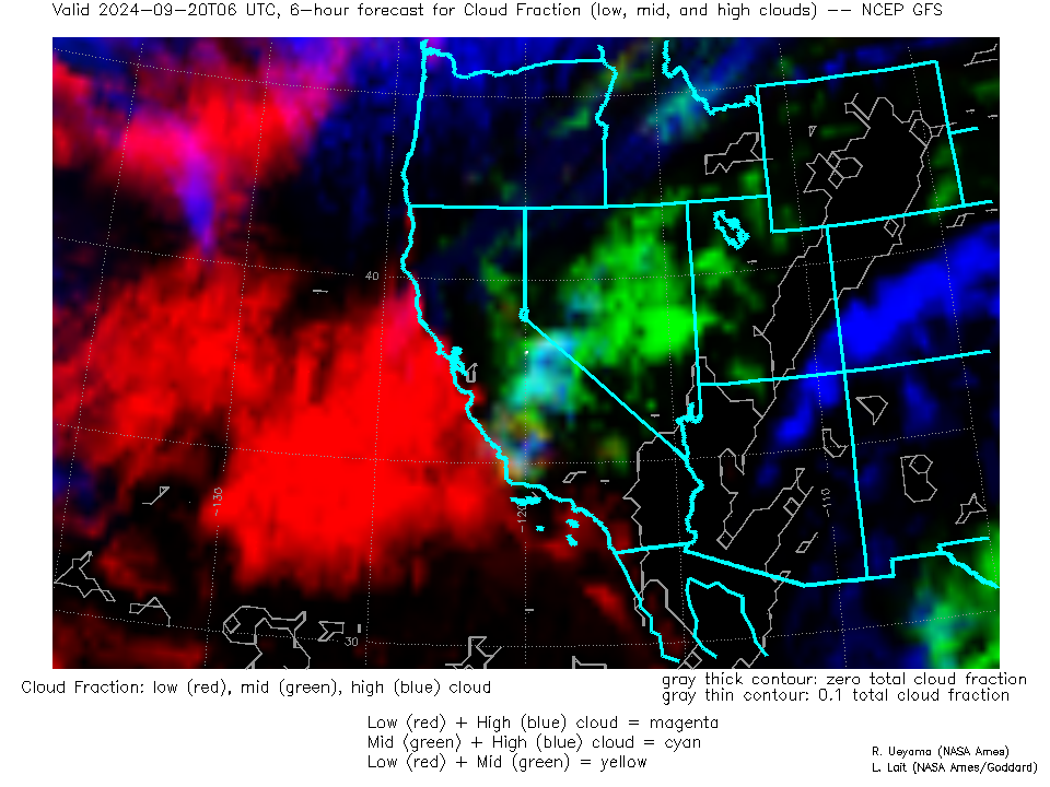 NCEP GFS Forecast Low-, Mid- and High-level Cloud Fraction