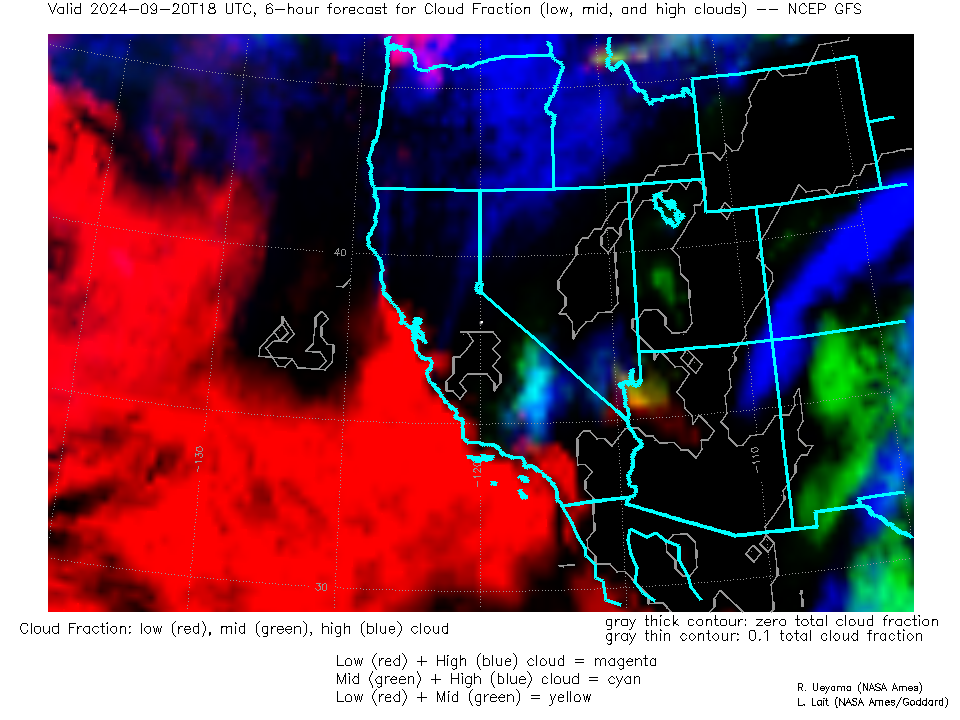 NCEP GFS Forecast Low-, Mid- and High-level Cloud Fraction