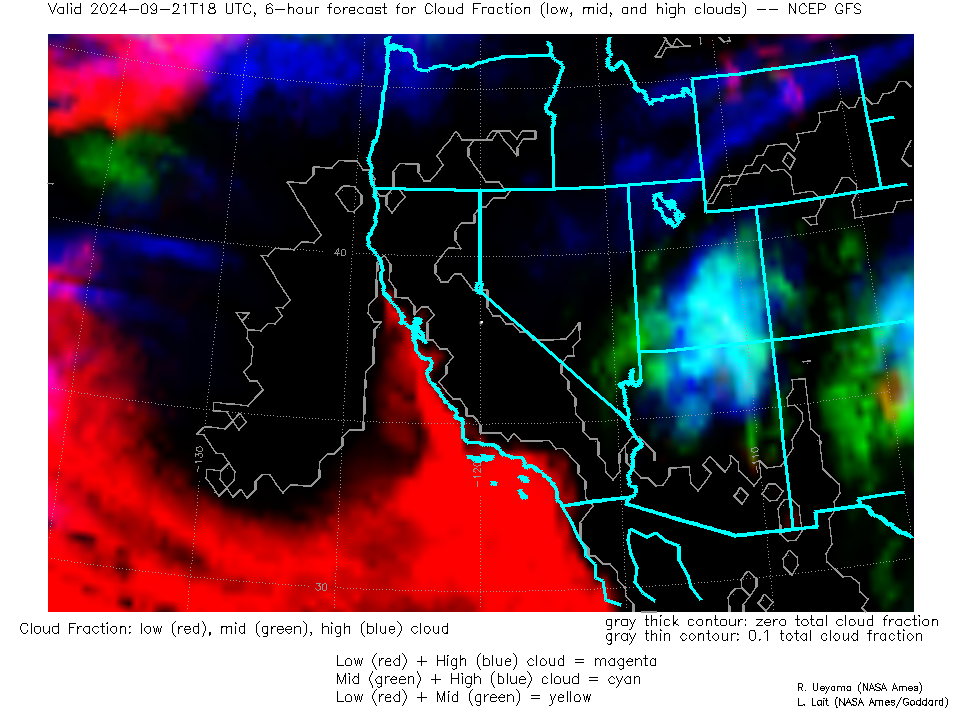 NCEP GFS Forecast Low-, Mid- and High-level Cloud Fraction