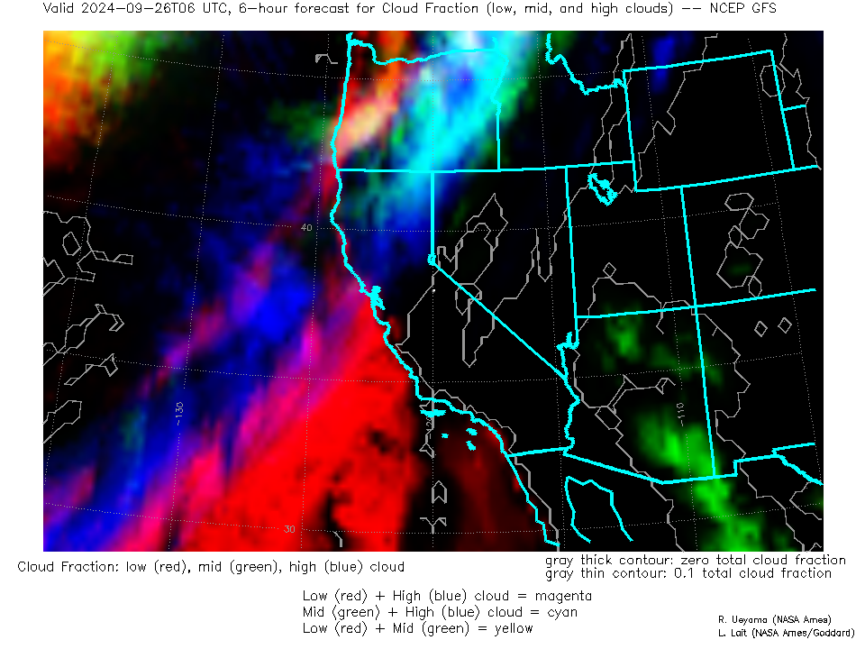 NCEP GFS Forecast Low-, Mid- and High-level Cloud Fraction