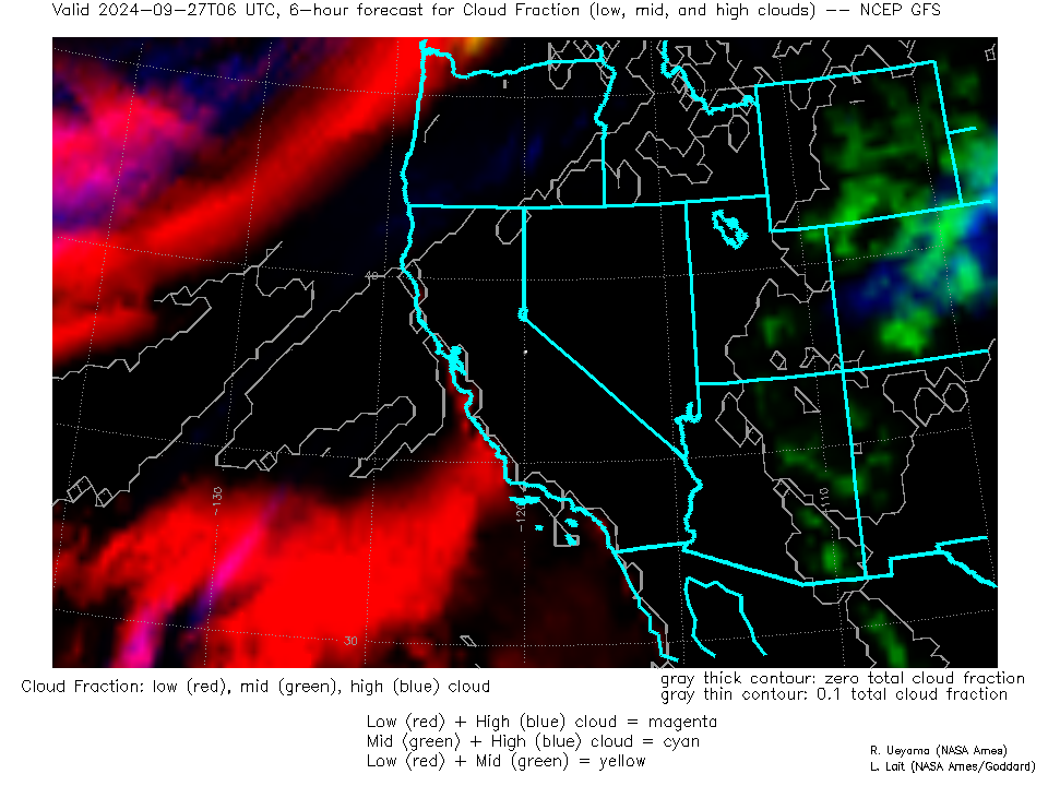 NCEP GFS Forecast Low-, Mid- and High-level Cloud Fraction