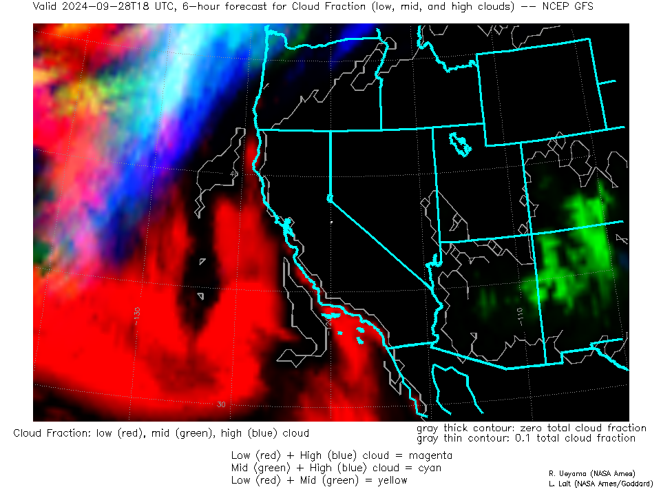 NCEP GFS Forecast Low-, Mid- and High-level Cloud Fraction