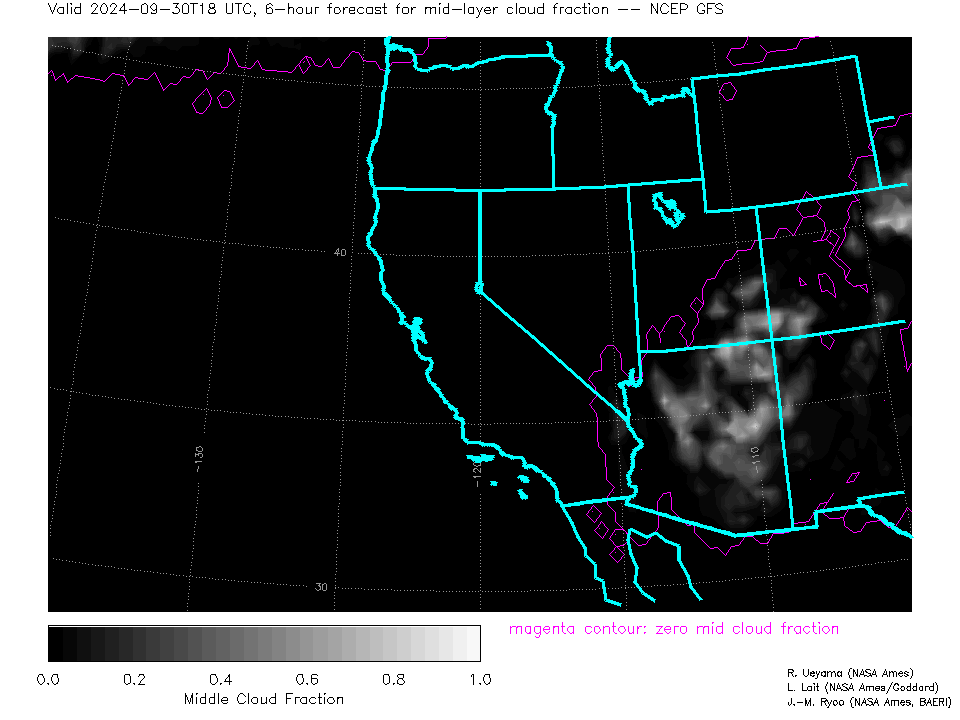 NCEP GFS Forecast Mid-level Cloud Fraction