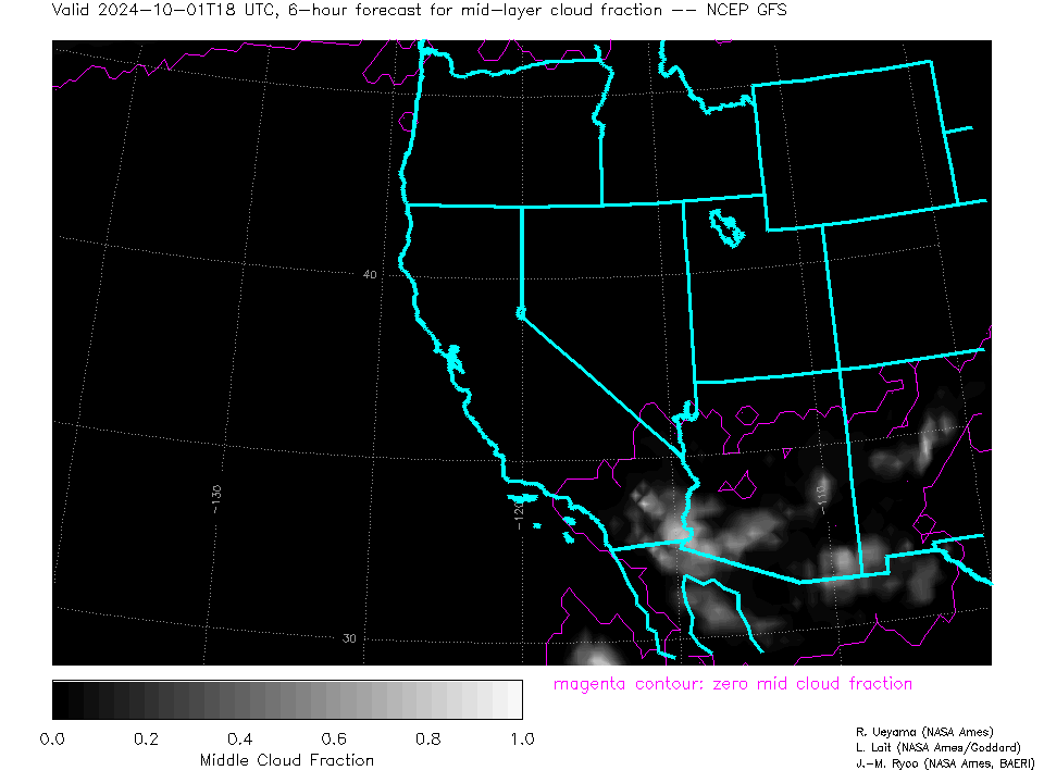 NCEP GFS Forecast Mid-level Cloud Fraction